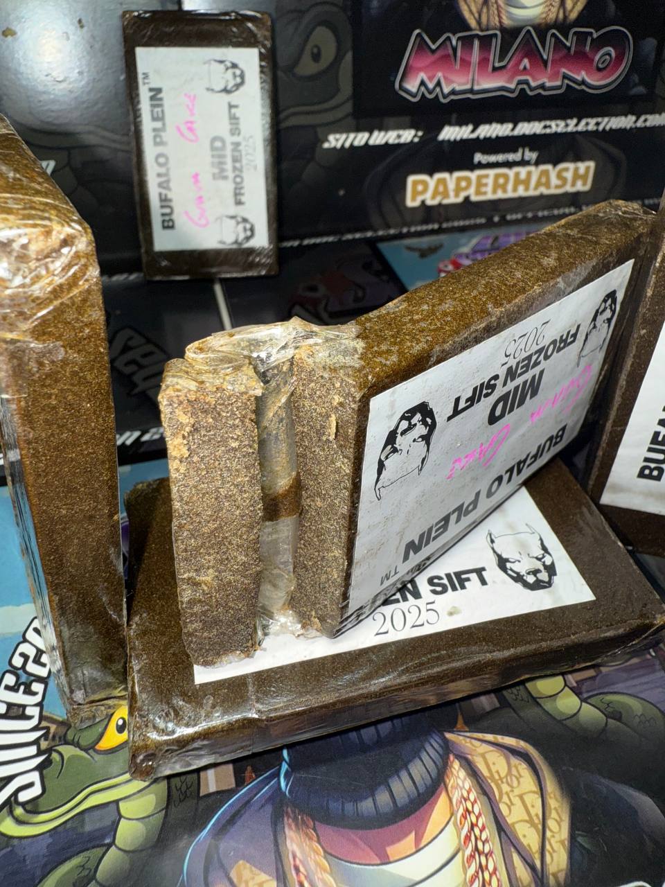 Questa versione mid del Frozen Sift Bufalo Plein, ricavata dallo strain Guava Cake, รจ ottenuta tramite setacciatura a freddo con filtri da 160 e 120 micron, per una polvere fine ma leggermente piรน corposa rispetto alla fascia top.